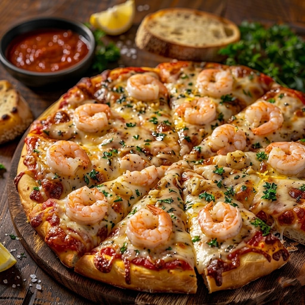 "Juicy shrimp, melted cheese, and a hint of garlic. A seafood lover’s dream!"
