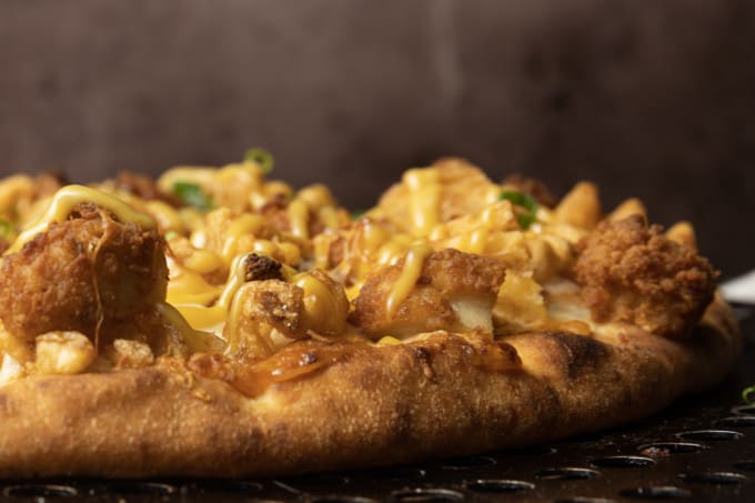 "Tender chicken, smoky BBQ sauce, and melted cheese. A smoky, tangy treat!"